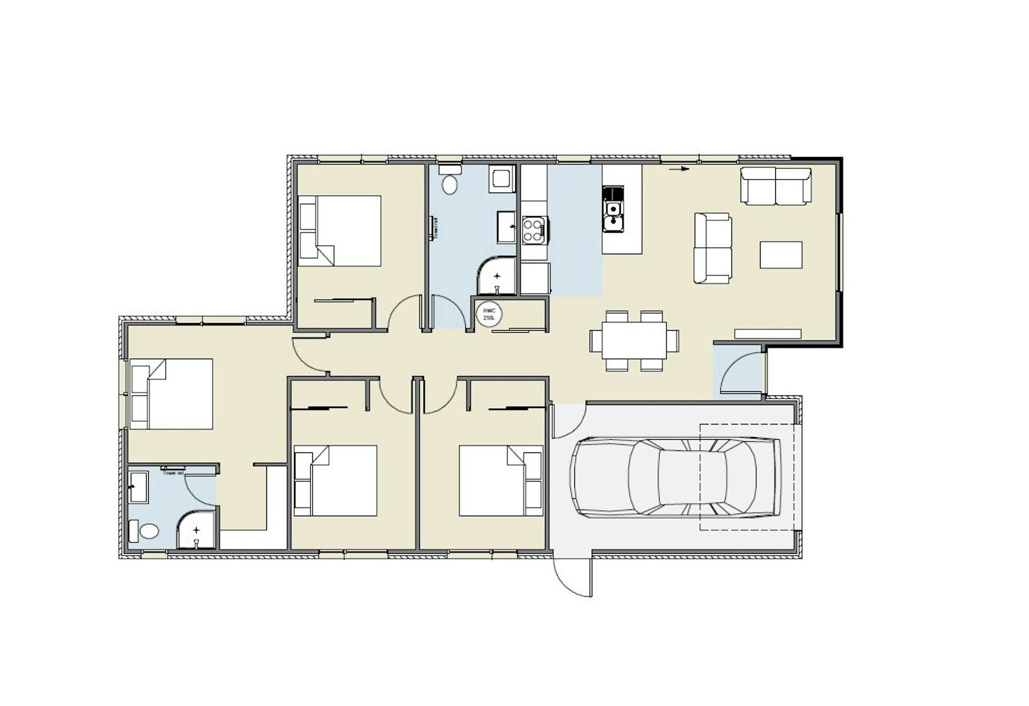 - Open plan lounge, dining and kitchen