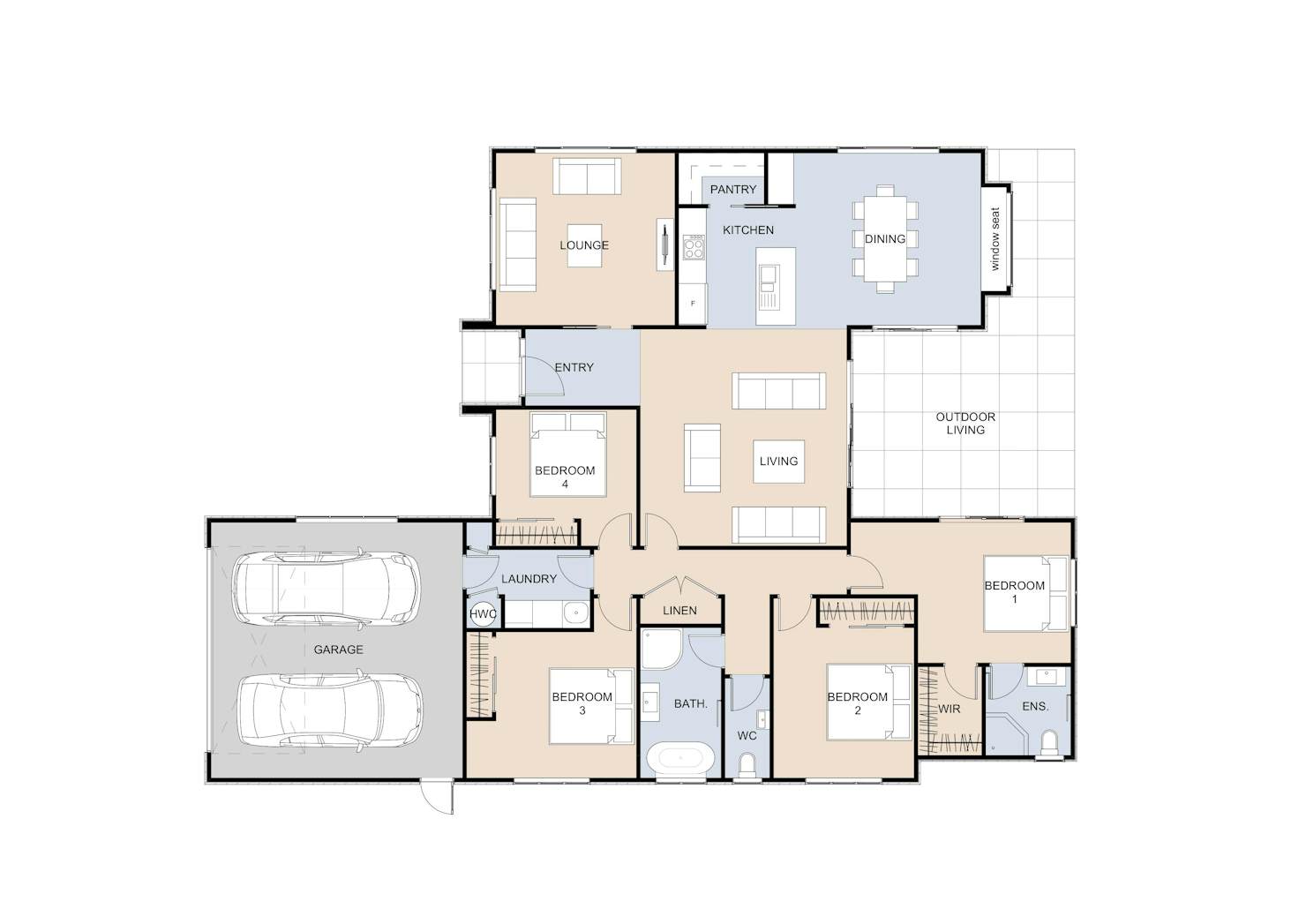 For this section we have used our Cobb plan. The Cobb's wide frontage creates a warm welcome, and gives this four-bedroom home charming street presence.