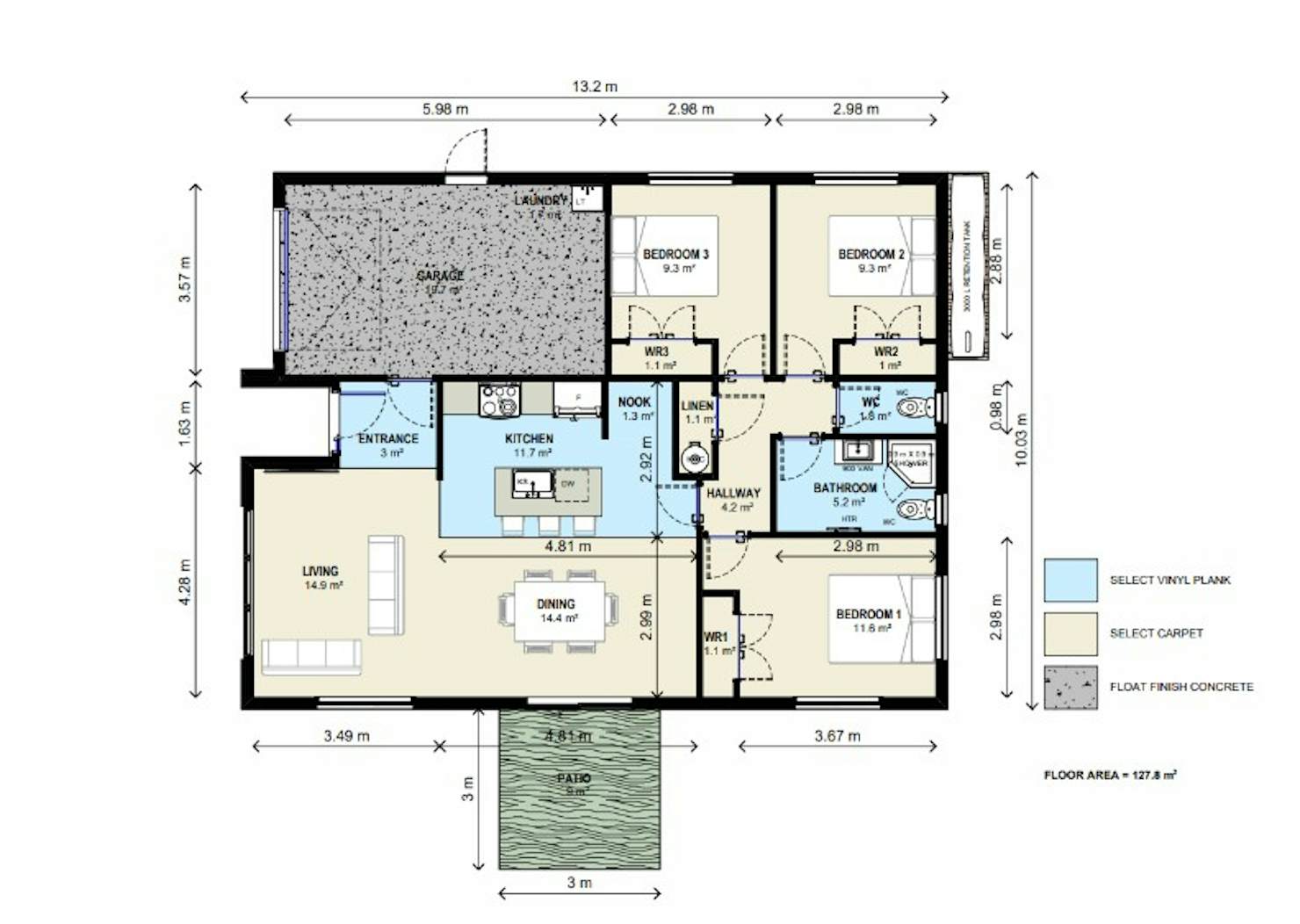 This plan is a family favourite. It features 3 bedrooms (including a master with ensuite), an internal access single garage, and a beautiful kitchen with plenty of bench space and a ranch slider leading to a patio.