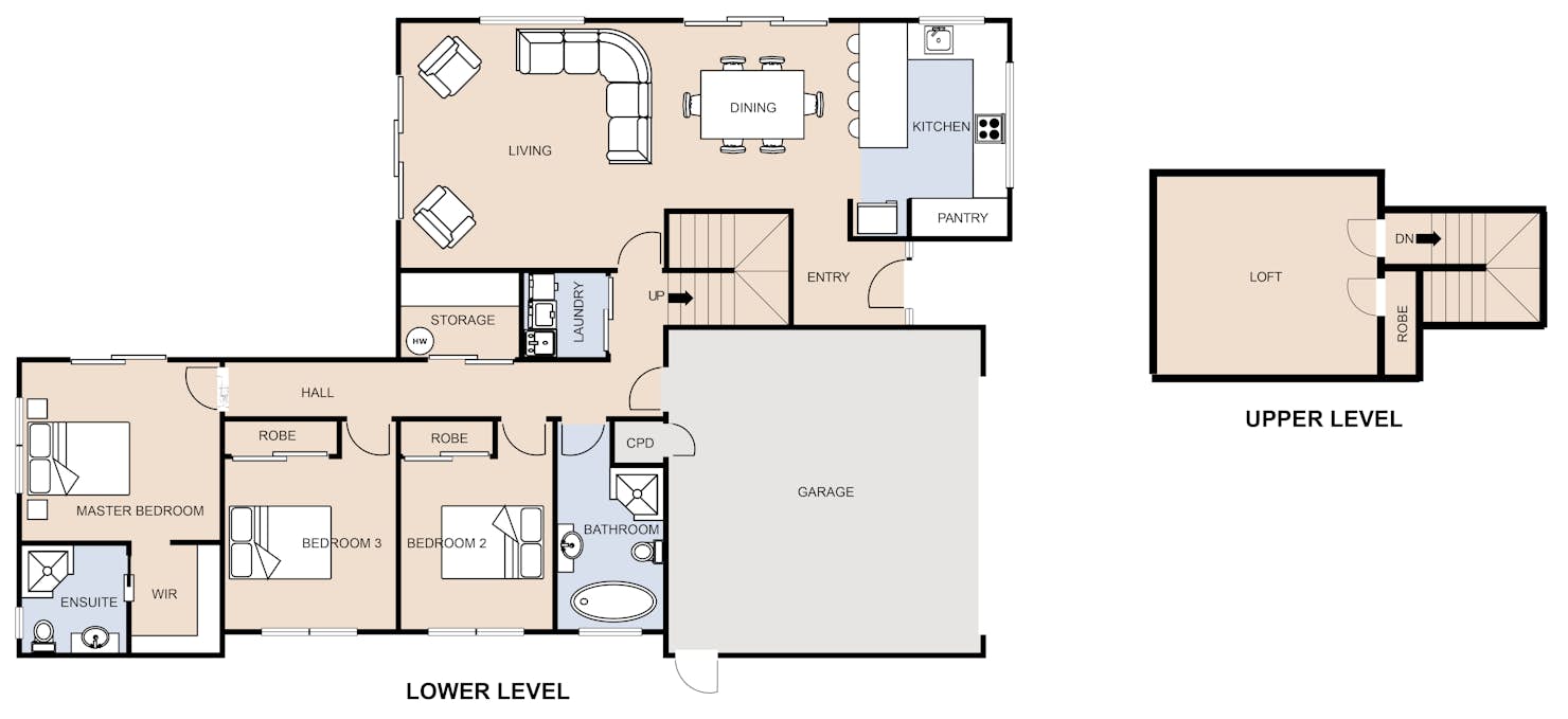 This stylish three-bedroom home blends charm with practicality. Enjoy a spacious open-plan living area and a cleverly designed L-shaped kitchen, perfect for family connection without the chaos of an island bench. Upstairs offers flexible space that can adapt as your family grows – from a kids’ hangout to a home office or guest retreat.