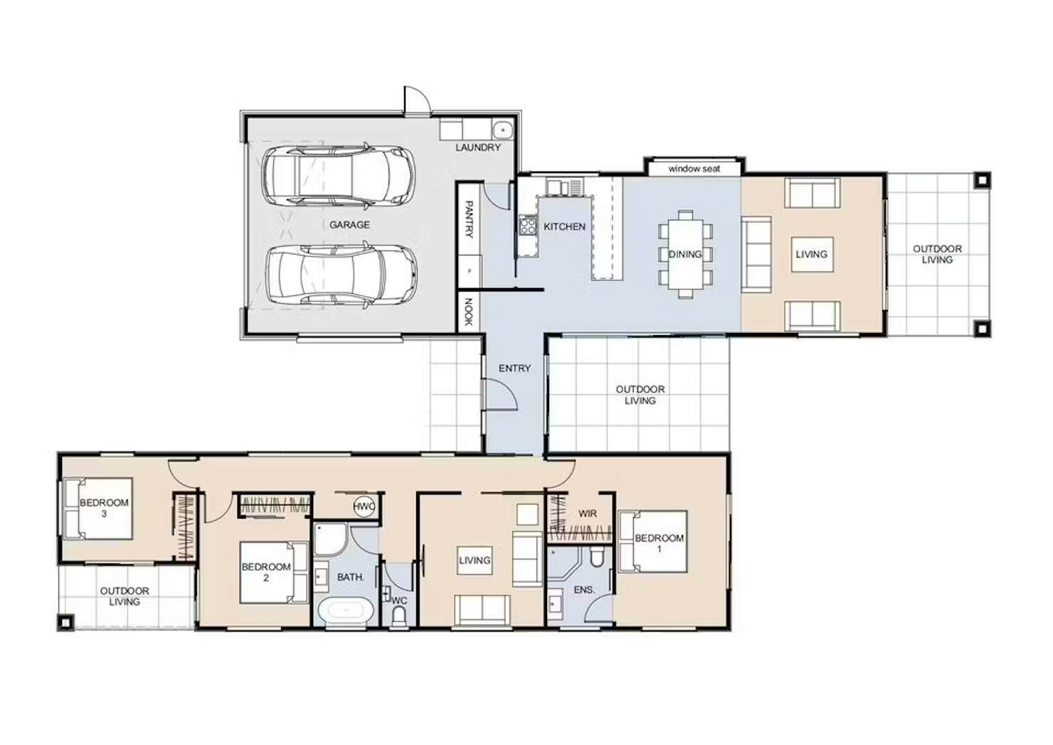 With four generous bedrooms and two bathrooms, the Richmond provides space for everyone to enjoy. The master suite is a private retreat, complete with a walk-in wardrobe and ensuite. At the heart of the home, the open-plan kitchen, dining, and family living area flows effortlessly to the outdoors, creating the ideal hub for entertaining or relaxing. A separate lounge offers flexibility – whether it’s a media room, formal lounge, or quiet space to unwind.