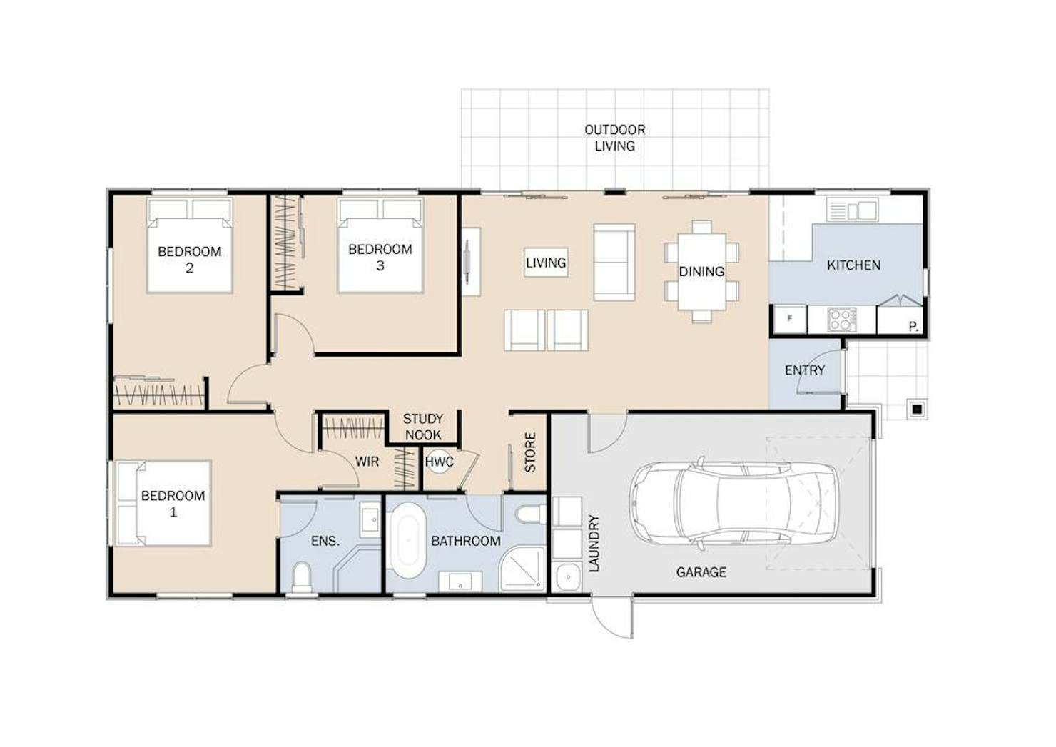 Enjoy open-plan living with the Ohau, featuring three double bedrooms, two bathrooms, including an ensuite, and internal access single garaging.