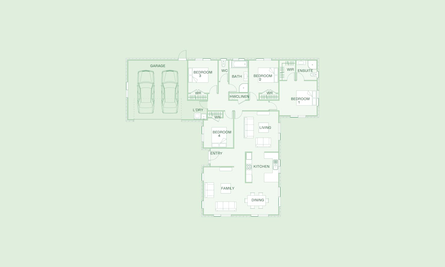 This T-shaped Takahe plan offers perfect separation of public vs private elements of the home. Four bedrooms, including a master suite complete with a walk-in wardrobe and an ensuite, sit away from the social heart of the home.  Enjoy easy access to the outdoors through the open-plan living, dining and kitchen spaces.