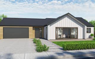 Enjoy the sunshine on this easily maintained section, with the 210m² Miromiro house plan. There is enough room for everyone, with four double bedrooms, an open-plan kitchen, living and dining area and a separate living room.