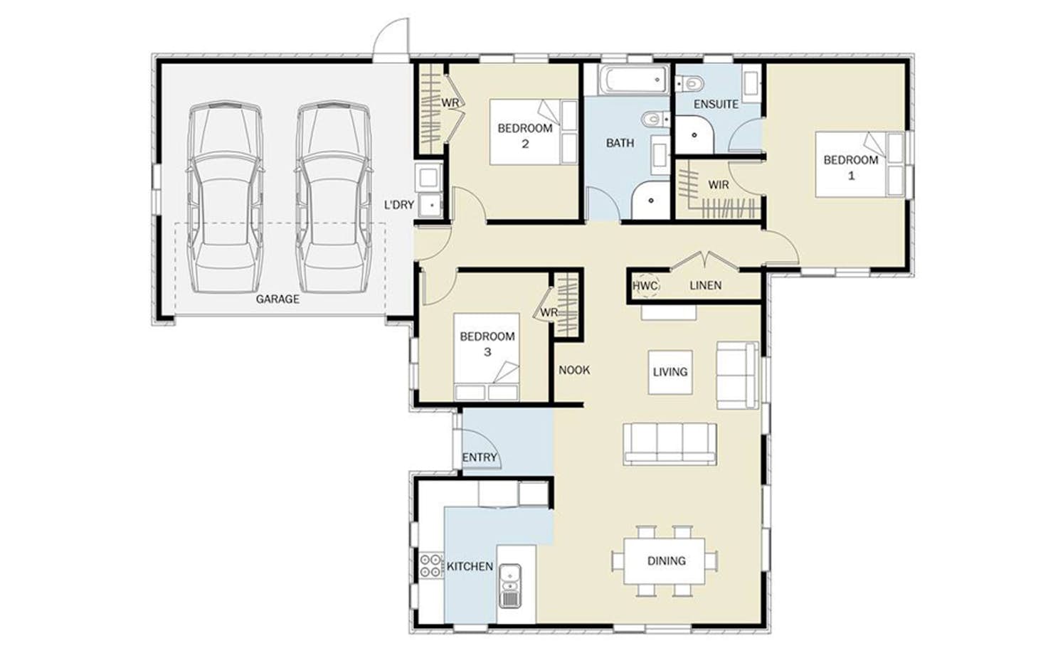 The package includes three double bedrooms, an open-plan living, kitchen and dining area, and a master bedroom with an ensuite and walk-in wardrobe. It really is an ideal home for families, retirees or a coastal holiday home.