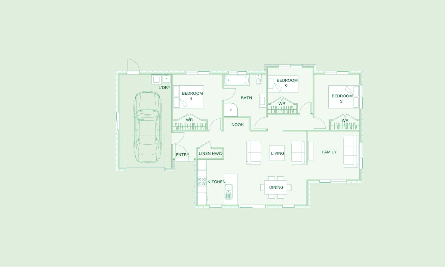 Our three-bedroom designed plan is a compact home with all the modern features. The cleverly designed floorplan allows for two double bedrooms, one single bedroom and expansive, light-filled living spaces.