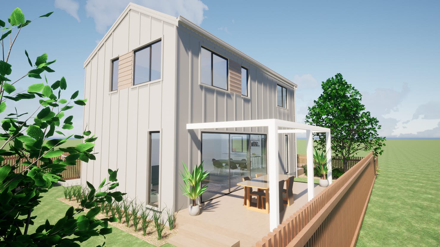 - Decking patio and pergola area