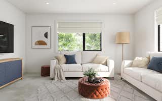 Thanks to the open-plan layout, the kitchen, living, and dining spaces invite families to connect. Ample windows and doors invite daylight into your home all year round.