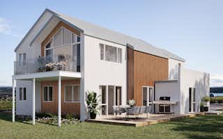 Signature Homes' architecturally designed plan delivers a standout family residence, blending modern elegance with high-end finishes. The striking exterior showcases premium weatherboard timber and the Rockcote Integra cladding system, ensuring both style and durability. Expansive windows and high ceilings fill the home with natural light, creating a warm and inviting atmosphere.