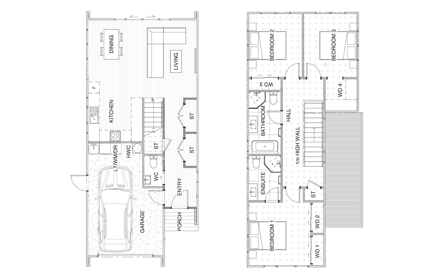 - Single-car garage and driveway parking for two cars