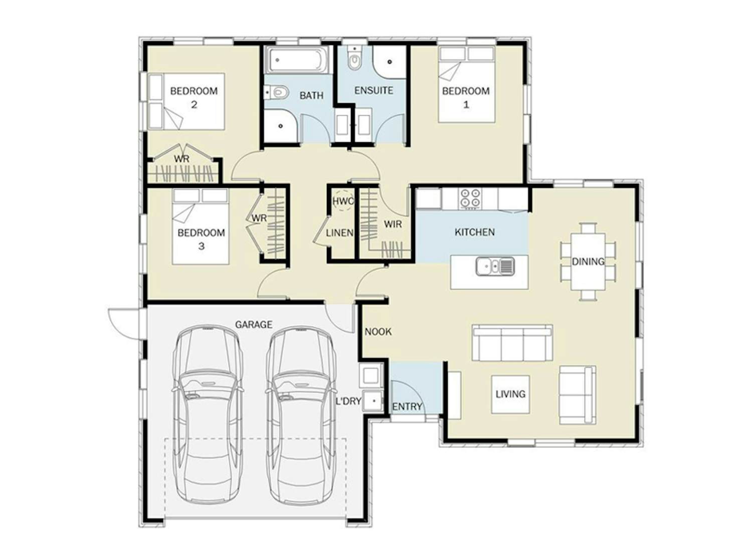 Our three-bedroom Hummingbird plan is a compact home with all the modern features. The cleverly designed floor plan allows for generously proportioned bedrooms and living spaces.