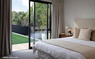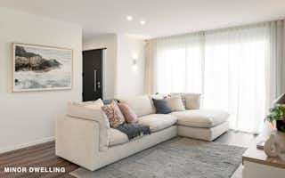 Lot One is a well-designed two-level home with a bedsit, set on a sunny, north-facing 424m² corner site with peaceful bush views. It features three double bedrooms upstairs, including a generous master with an ensuite, and a family bathroom with elevated outlooks. Downstairs offers a WC, study nook, and open-plan living that flows to a north-facing deck with a pergola. A self-contained bedsit with its own kitchen, lounge, bedroom, ensuite, and private entrance adds ideal flexibility for guests or multi-generational living.