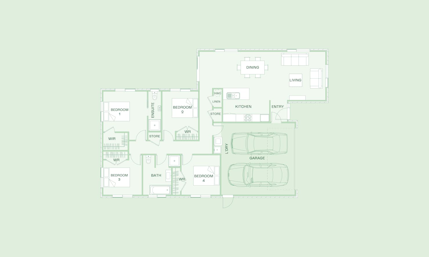 Our four-bedroom Kakapo plan offers a light-filled home with four generous bedrooms and an open plan kitchen and living space. Make this home uniquely yours by working with our interior design team.