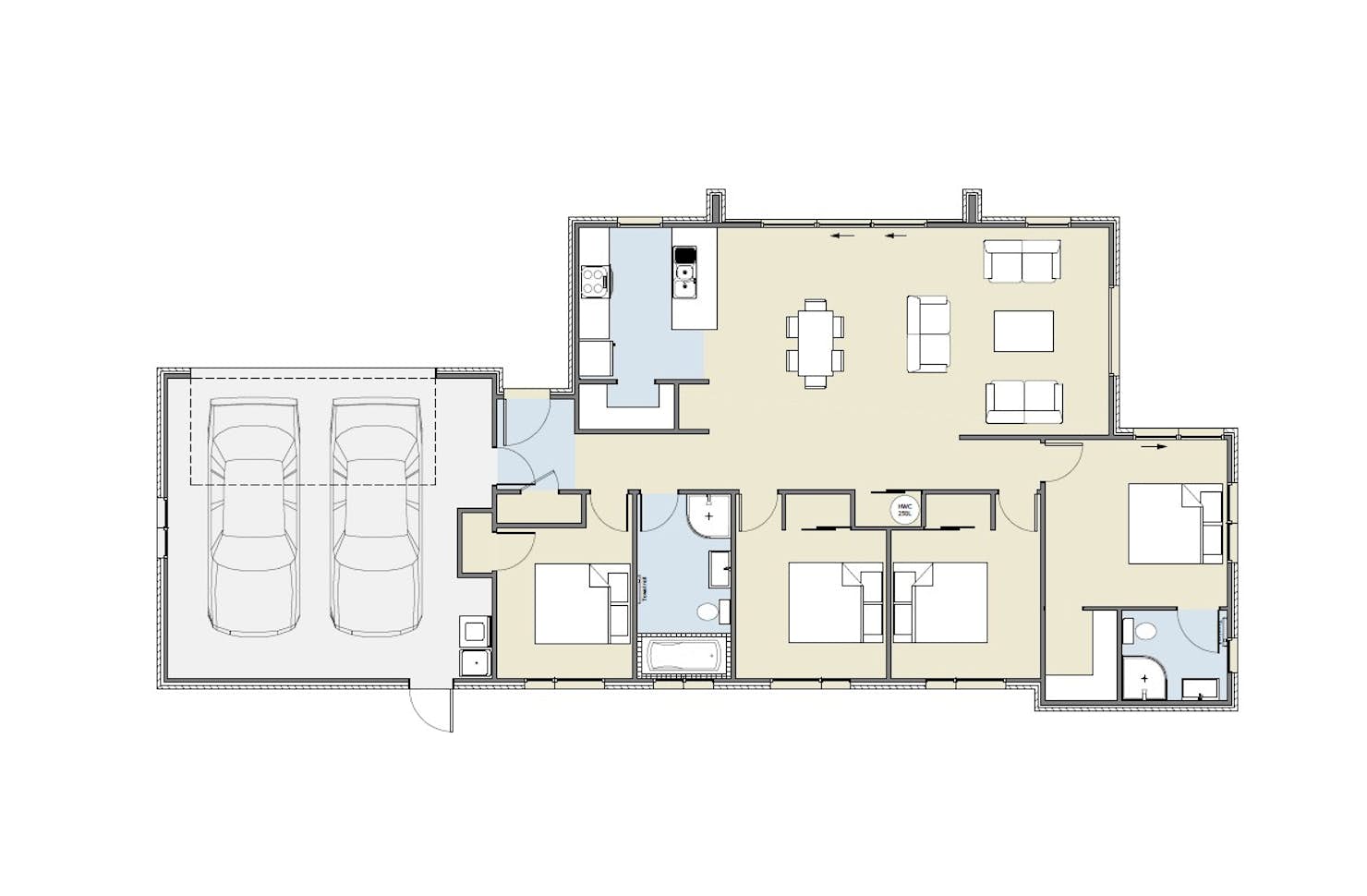 Fusing style and functionality, there is a lot on offer with the four-bedroom Kakariki plan. The open plan layout welcomes light into your home, with multiple areas to access the outdoors. The modern kitchen comes complete with a large pantry and a study nook just around the corner. This plan has all of the attributes that make for a great family home.