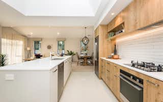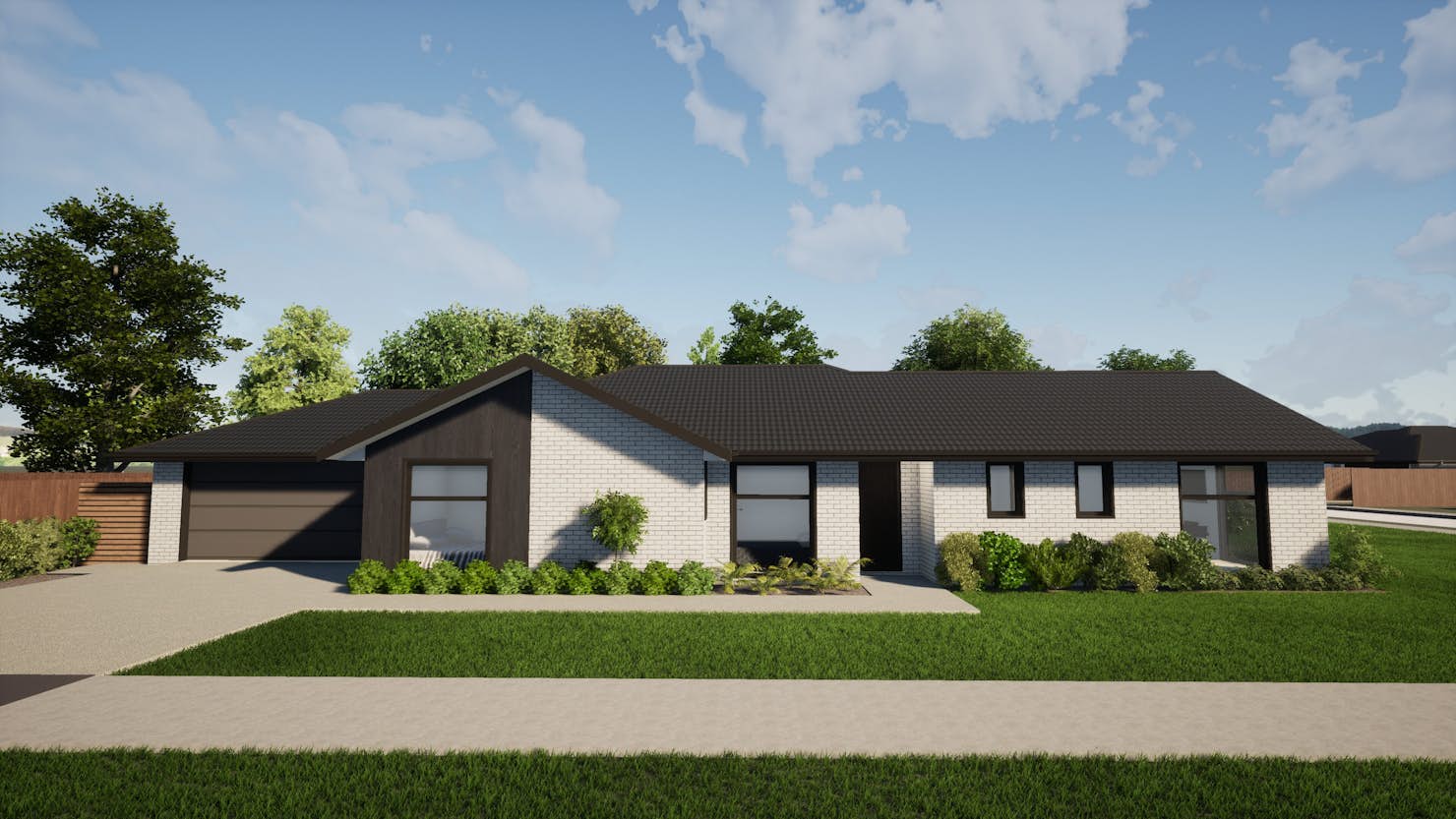 The wide frontage of the four-bedroom Saddleback plan creates a warm welcome and gives this single-level home a charming street presence. Open-plan living and dining form a central living space that brings everyone together, while an adjoining second living room offers another space to unwind. The family-friendly layout cleverly groups all the bedrooms together, an excellent design for those with young children.