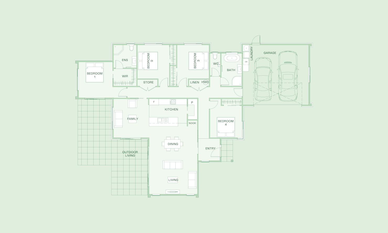 Four double bedrooms, including a well-appointed master, are innovatively positioned to form the bedroom zone, giving you the flexibility to organise your home to best suit your family.
