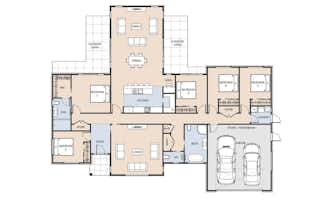 The Adventure is a spacious floorplan that will suit all your family’s needs. Inside the porch entry is a master retreat and second bedroom that could be configured as a guest suite, along with a formal living room. There's a cloak cupboard and direct access down the expansive hallway.