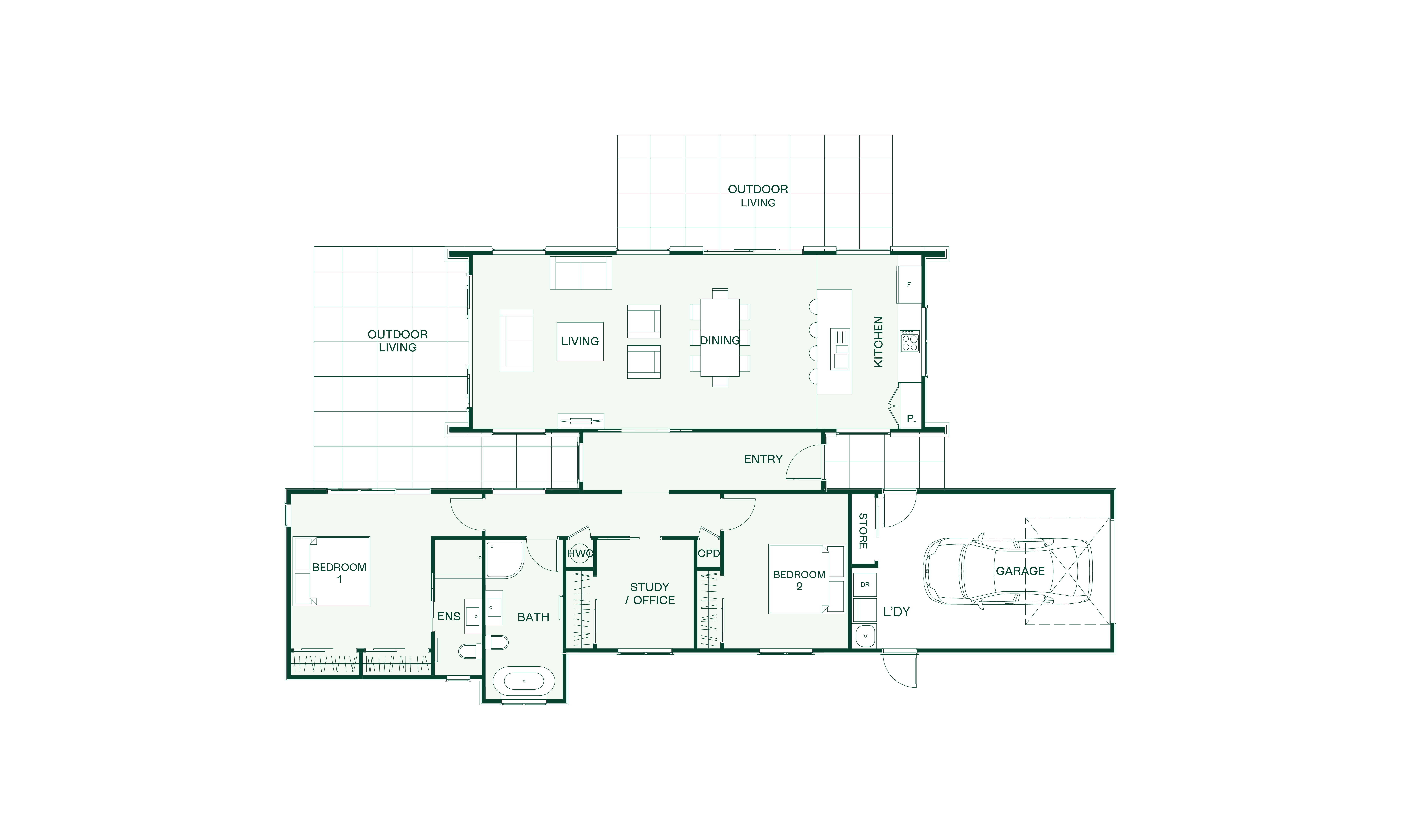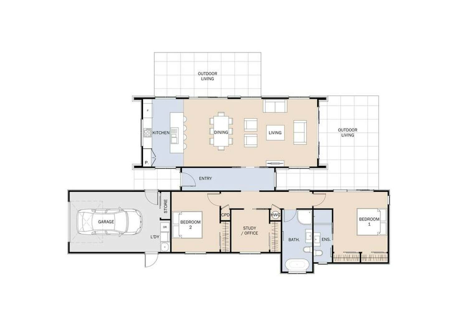 The Benmore design features modern must-haves paired with a practical layout. The bedroom wing features two double bedrooms, including the master that occupies one end of the home as well as an office that can be used as a third bedroom, depending on your lifestyle.