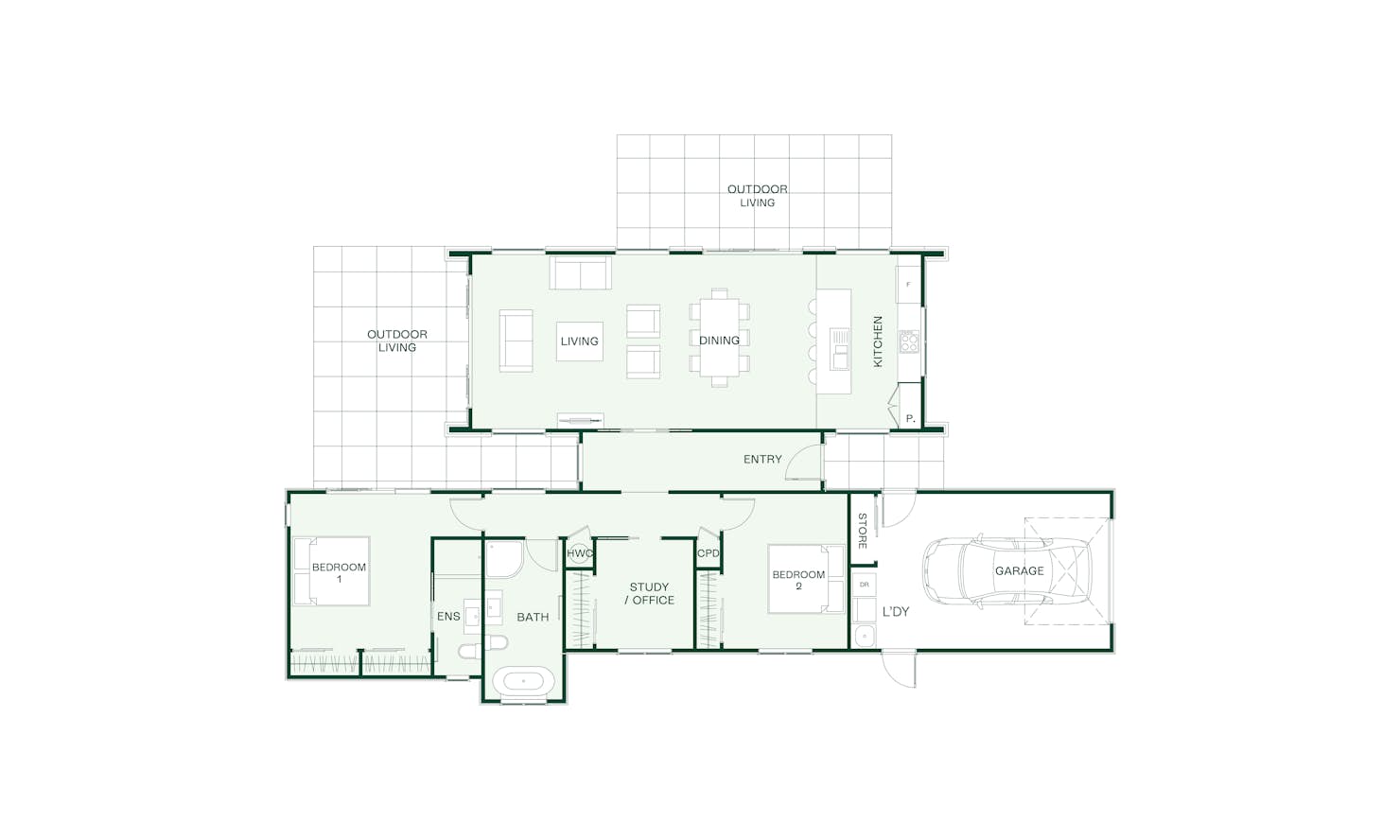 The Benmore design features modern must-haves paired with a practical layout. The bedroom wing features two double bedrooms, including the master that occupies one end of the home as well as an office that can be used as a third bedroom, depending on your lifestyle.