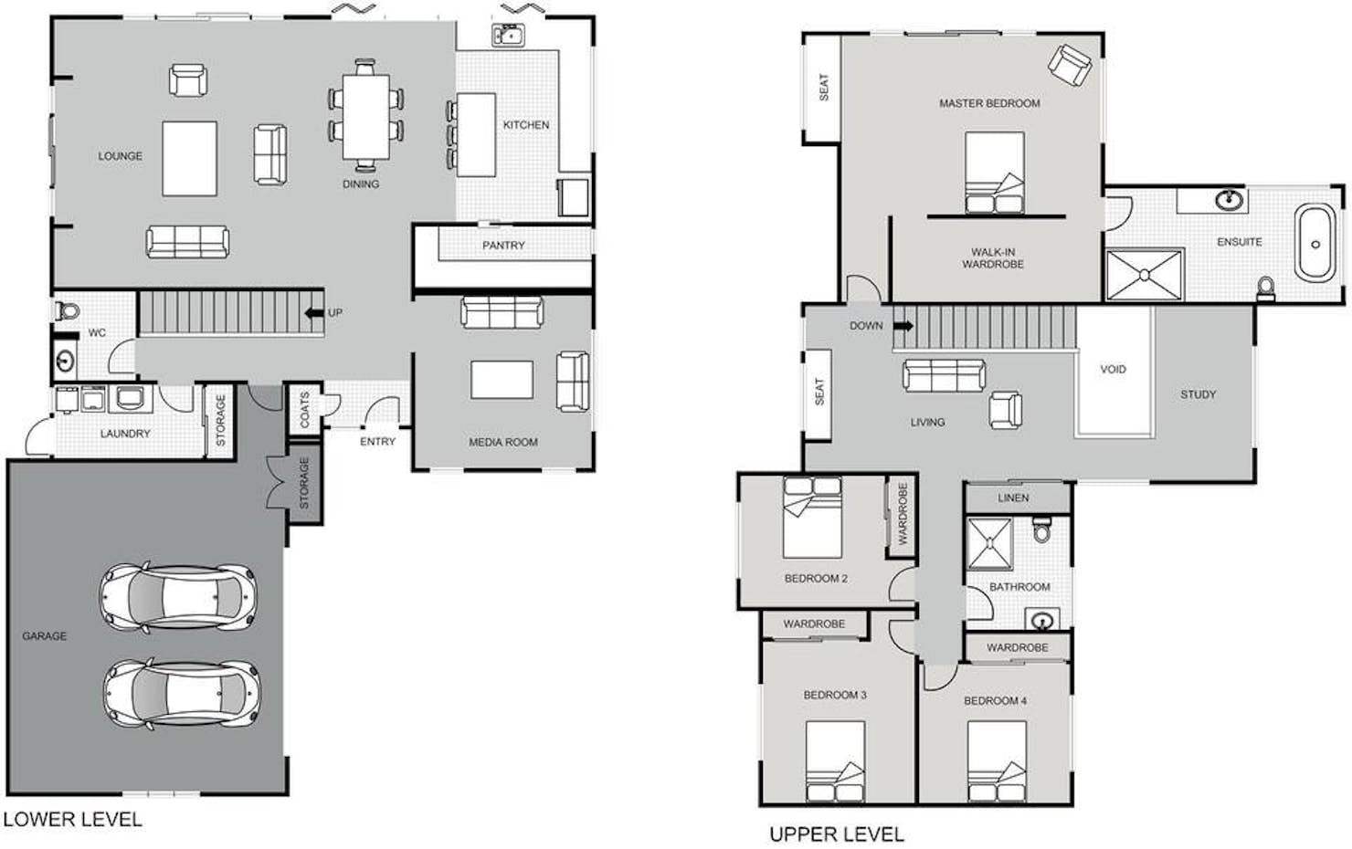 This spacious Design & Build is spread across two floors, the ground floor is the communal, open-plan living space with easy access to the expansive 102sqm Kwila deck. The upper level is where you'll find the four bedrooms, study and kids' area.