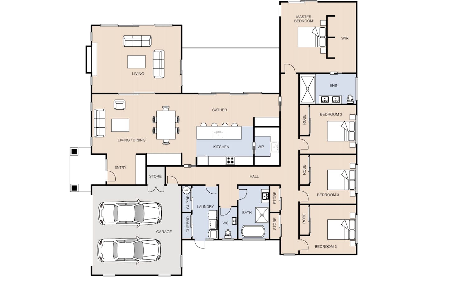 Escape to this luxurious 260sqm country retreat, featuring four spacious bedrooms and two versatile living areas.