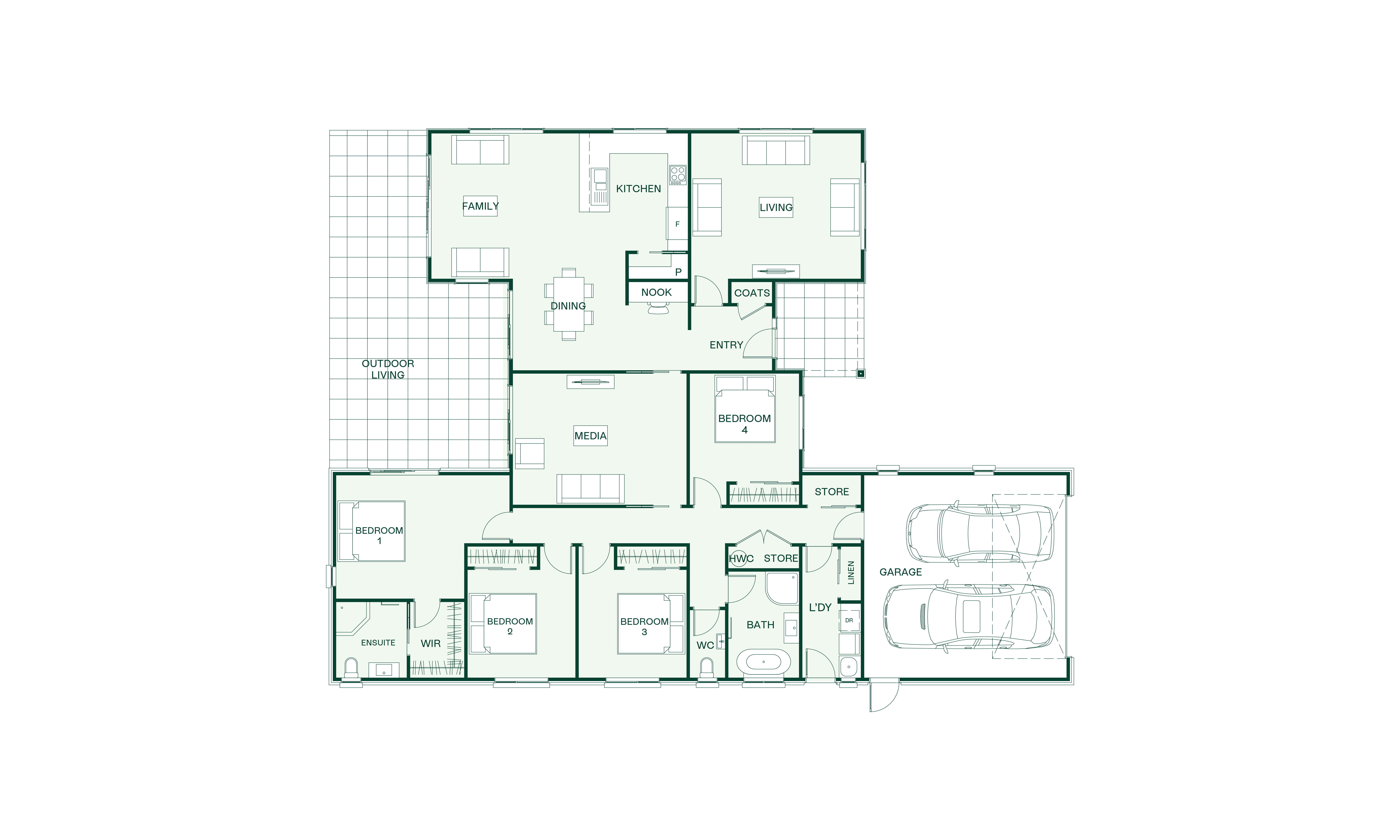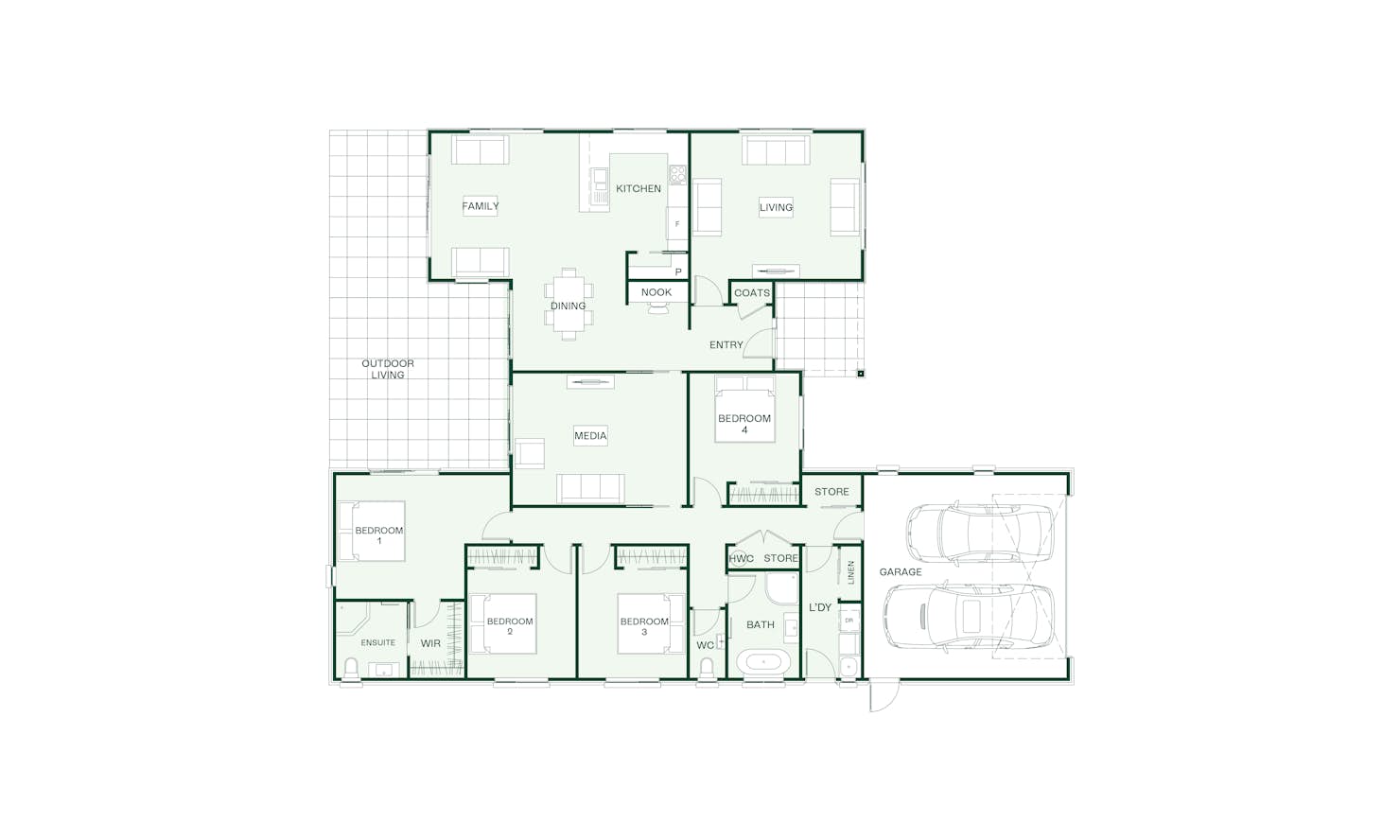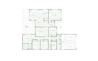 Four double bedrooms wrap around the heart of the home, sharing a family bathroom. The Caloundra offers two distinct zones within the open-plan living space with stacking doors opening to reveal an expansive outdoor area. Whether you’re entertaining, enjoying family time or craving time out for yourself, the Caloundra meets all of life’s events with ease.