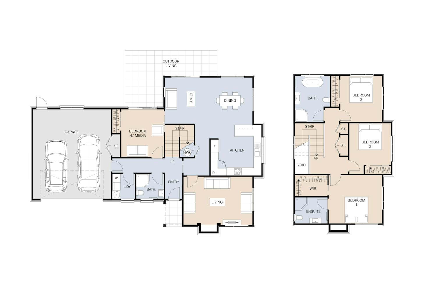 The Drake is a functional family home, with four bedrooms and multiple living areas spread over two storeys. A lounge near the entry offers a secluded space to unwind away from more hectic entertaining activities.
