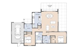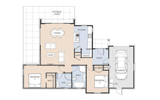 A compact home with big house features. The Dunstan's wide frontage gives it great street presence, while the modern kitchen creates a focal point in the open-plan living area, which is extended by the integrated outdoor area.