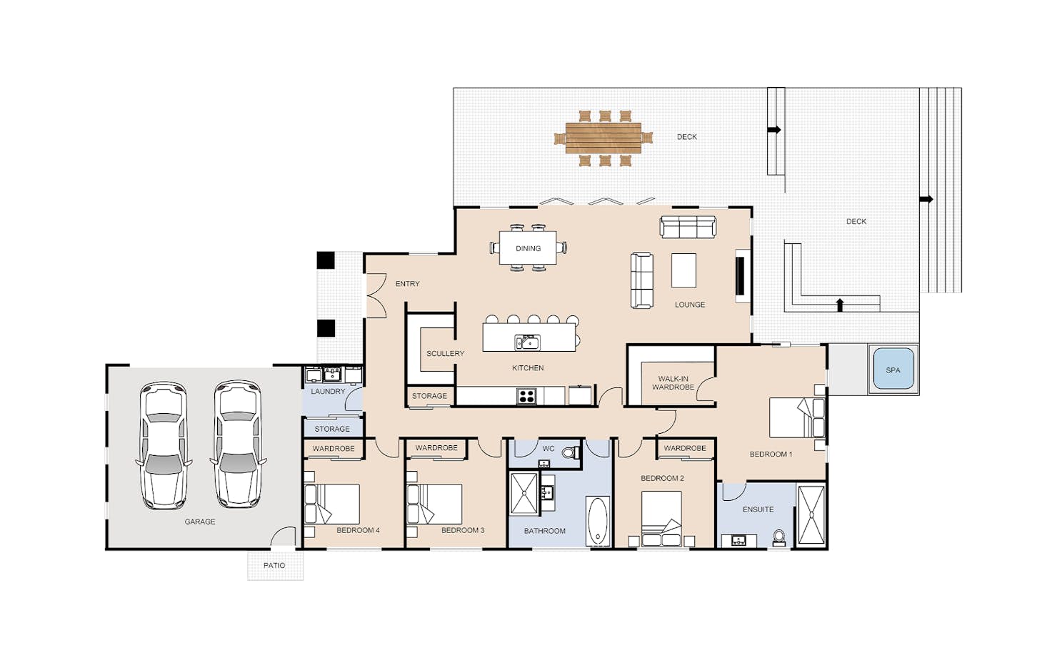 Our client's brief was to design a home ideal for entertaining with ample room for flatmates. As a result, there's plenty of space for all to enjoy with our four-bedroom Eastcott plan.