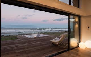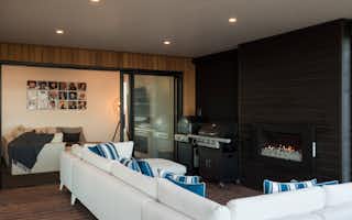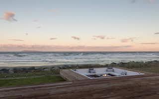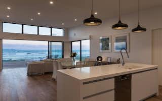 This design is an entertainer’s delight, with spacious indoor and outdoor living areas including a luxurious firepit with sweeping views across the beach.