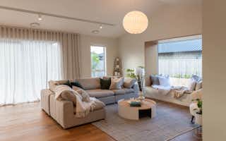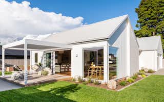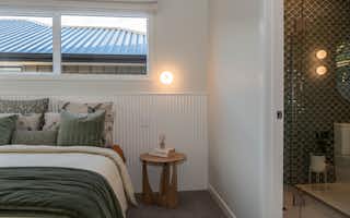 Designed to reflect a welcoming coastal-inspired abode, the Huapai design perfectly celebrates nature and a connection with the outdoors. Featuring a minimal tonal colour palette of crisp white, paired with stunning wooden accents to further accentuate the modern coastal look.