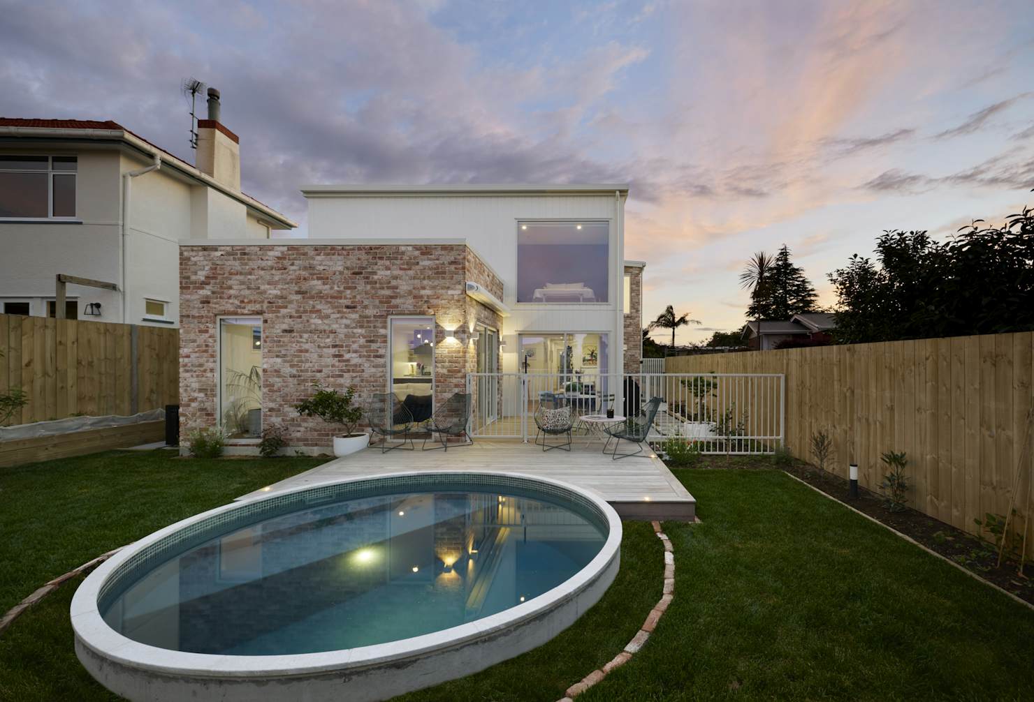 The exterior pairs brick with vertical cladding for a clean, contemporary look, giving the home a confident street presence that feels both modern and timeless.