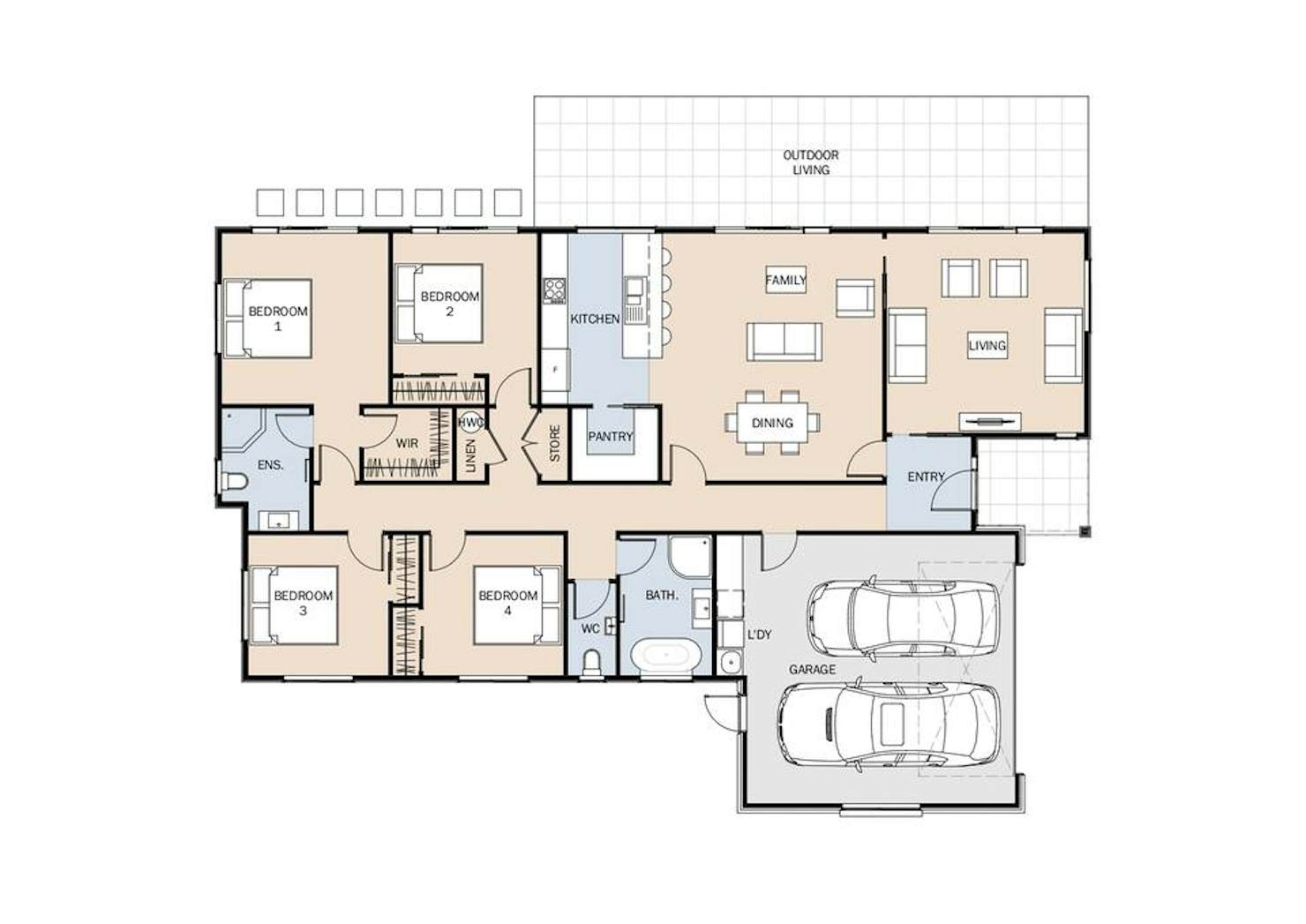 Smart and modern at it's core, the Karapiro features four double bedrooms and two bathrooms including ensuite and internal access to a double garage.