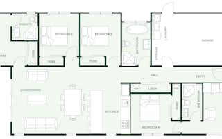 Meet 'Kawarau' a well-designed four-bedroom home offers the perfect blend of open-plan living and private retreats. With multiple bathrooms, a functional kitchen, and versatile spaces, it is ideal for families of various sizes.
