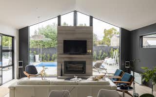 Within this remarkable home, spacious raked ceilings and a distinctive feature fireplace with natural timber serve as the highlights, creating a truly special and inviting ambiance.