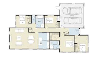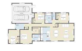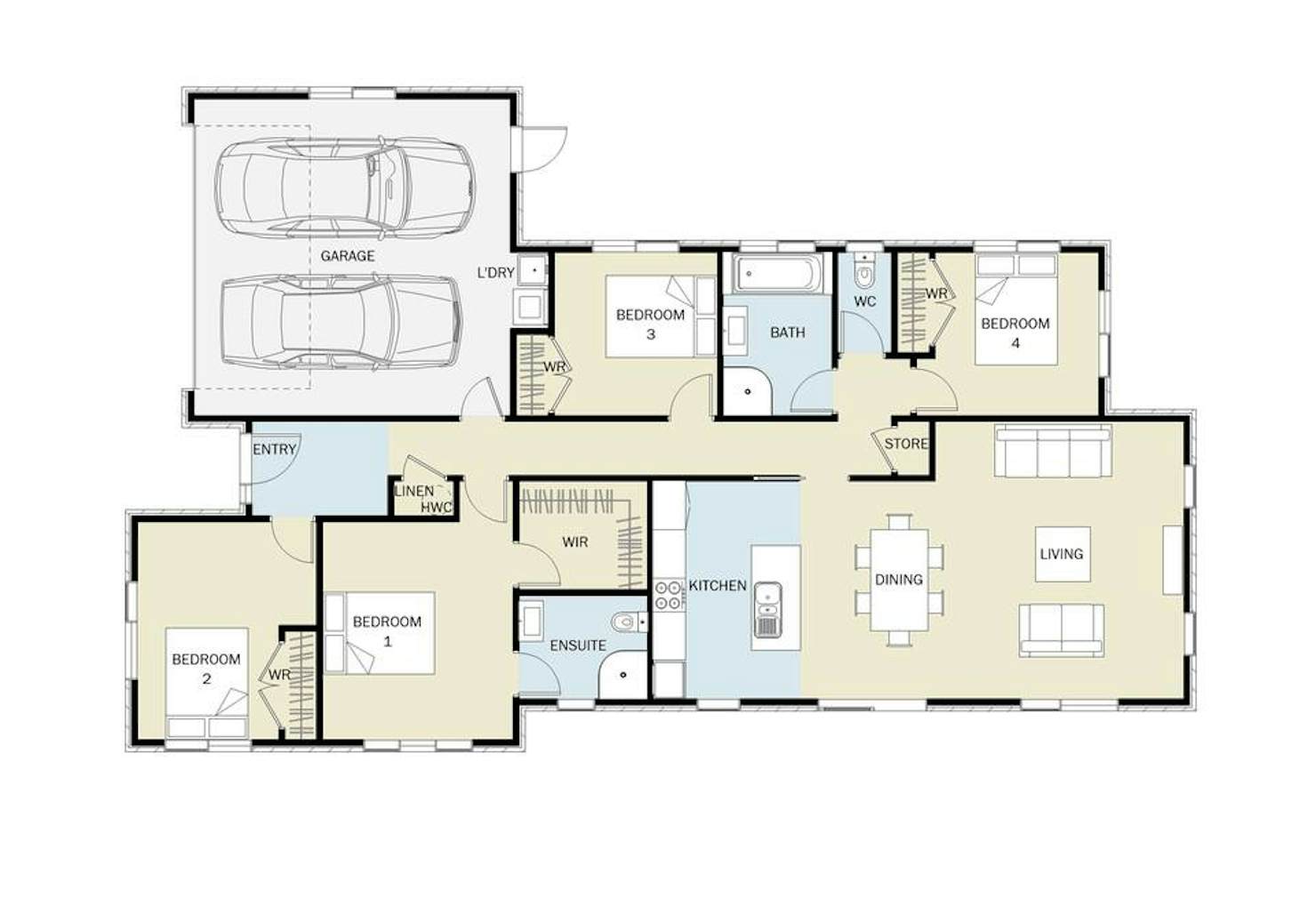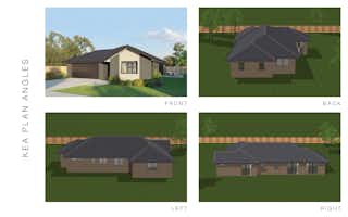 The Kea plan features four generously sized bedrooms, with the master suite positioned away from the main living spaces. The master suite includes a large walk-in robe and ensuite.