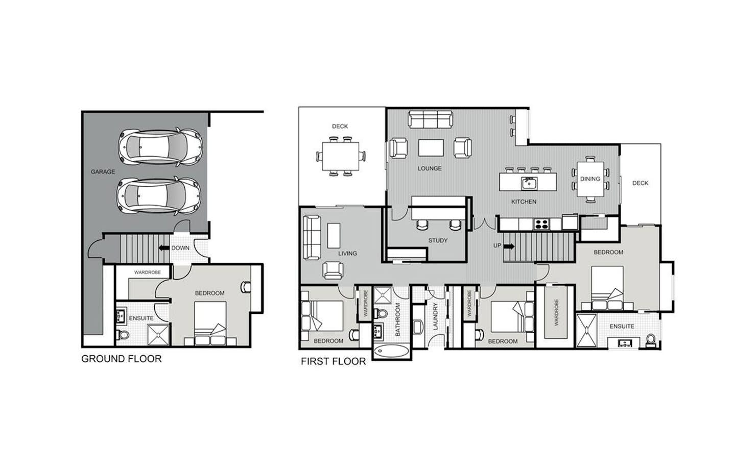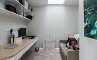 The front door opens to a large staircase and the ground floor has an internally accessed double garage plus a teenager's suite. The upper level opens out to generous open-plan family living, dining and kitchen and a discreet study. Turn left at the top of the stairs and it's the parents' retreat, with a walk-in wardrobe and sumptuous bathroom. Further down the landing is the more bedrooms and the children's living area. Everyone has been catered for using different family zones.