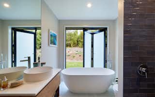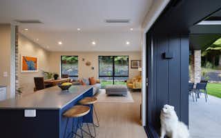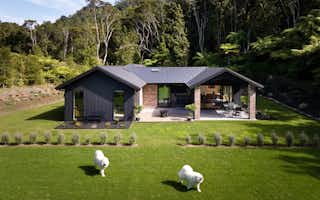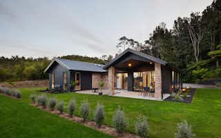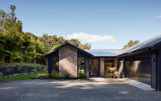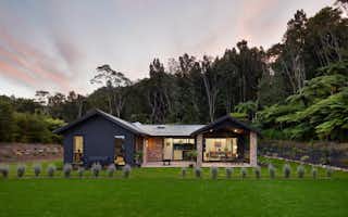 The three-bedroom Koko offers a secluded retreat nestled within lush native bush. Its design seamlessly integrates with the landscape, creating a tranquil environment. Imagine relaxing evenings on the patio, enjoying the warm light from inside and the fresh air.