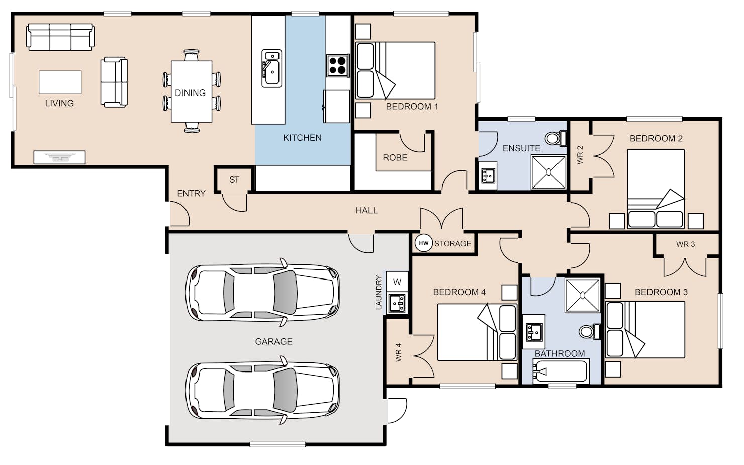The Manawatu plan consists of four spacious bedrooms, making it an ideal choice for growing families.