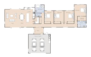 If you're looking for a home that offers an indoor-outdoor flow, our Maxwell design is for you. The Pavilion style design is about easy flow and highly liveable spaces with four bedrooms and open living spaces for families to connect.