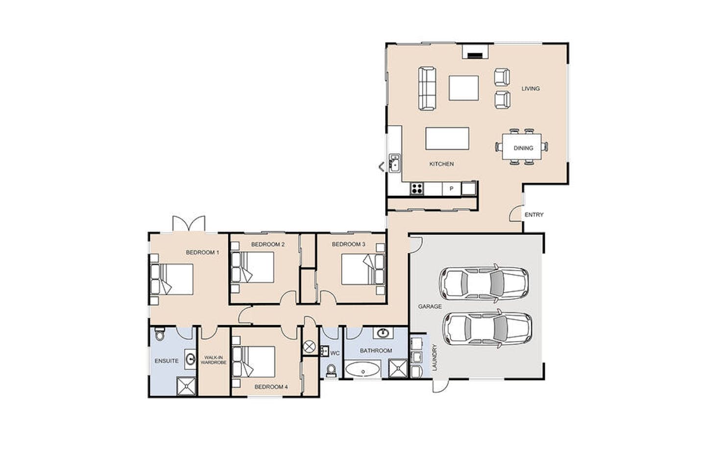 Our modified Toto plan features an impressive layout like our original Toto plan where our clients Molly and Brett, and their Signature Homes architect, have cleverly reorganised the design to complement their stunning Raglan section.