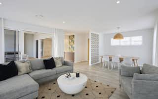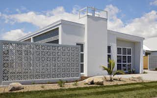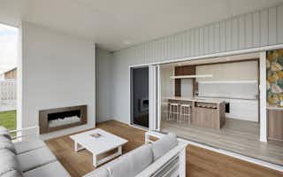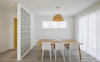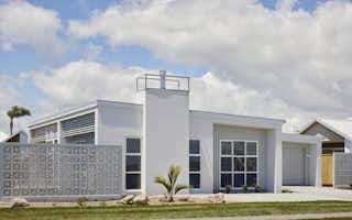 The 70’s inspired breeze blocks and vertical timber weatherboard cladding make for a striking home. Mid-century modern inspired design elements flow throughout the interior - including a rich variety of finishings and textures with surprising pops of colour.
