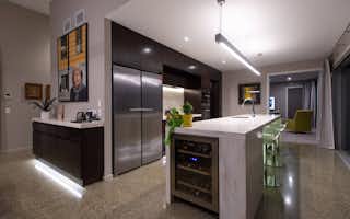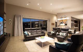This U-shaped home sees you enter into a bright open-plan living and dining area complete with large, designer kitchen, scullery, and closed-off media room. This side of the home completely opens up with slider doors in all rooms to make the most of the vistas.