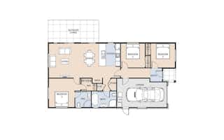 The second option in our popular Ohau plan sees the entryway open to a lovely view of a light-filled open-plan living and dining area, with two double bedrooms tucked away.