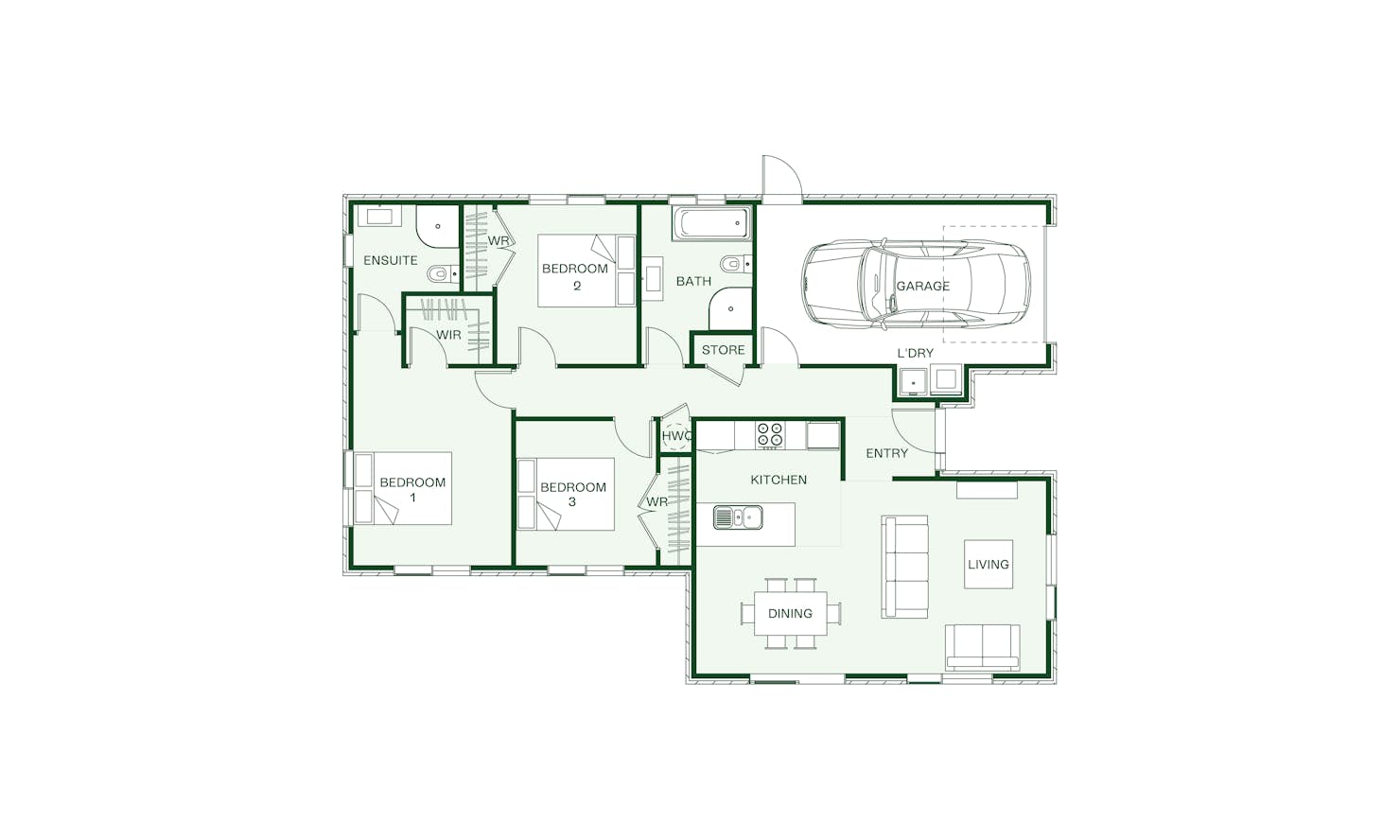There's a lot on offer in this compact yet cleverly designed three-bedroom plan. Featuring three well-appointed bedrooms and open plan living - if you've to build on a smaller site and want to maximise the land and your budget, enquire about our Oystercatcher plan today.