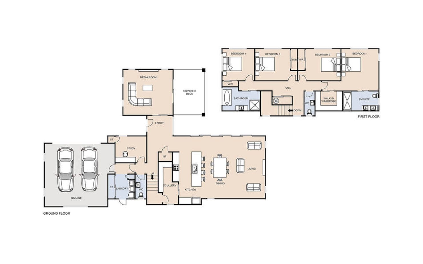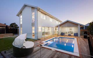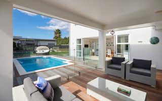 Our Papamoa Design & Build plan embraces outdoor living, where spaces flow with ease to the outdoors. This architecturally inspired, two-level oasis features four bedrooms and 2.5 bathrooms; the functional floorplan makes clever use of space with two living areas and multiple access points to the outdoors.