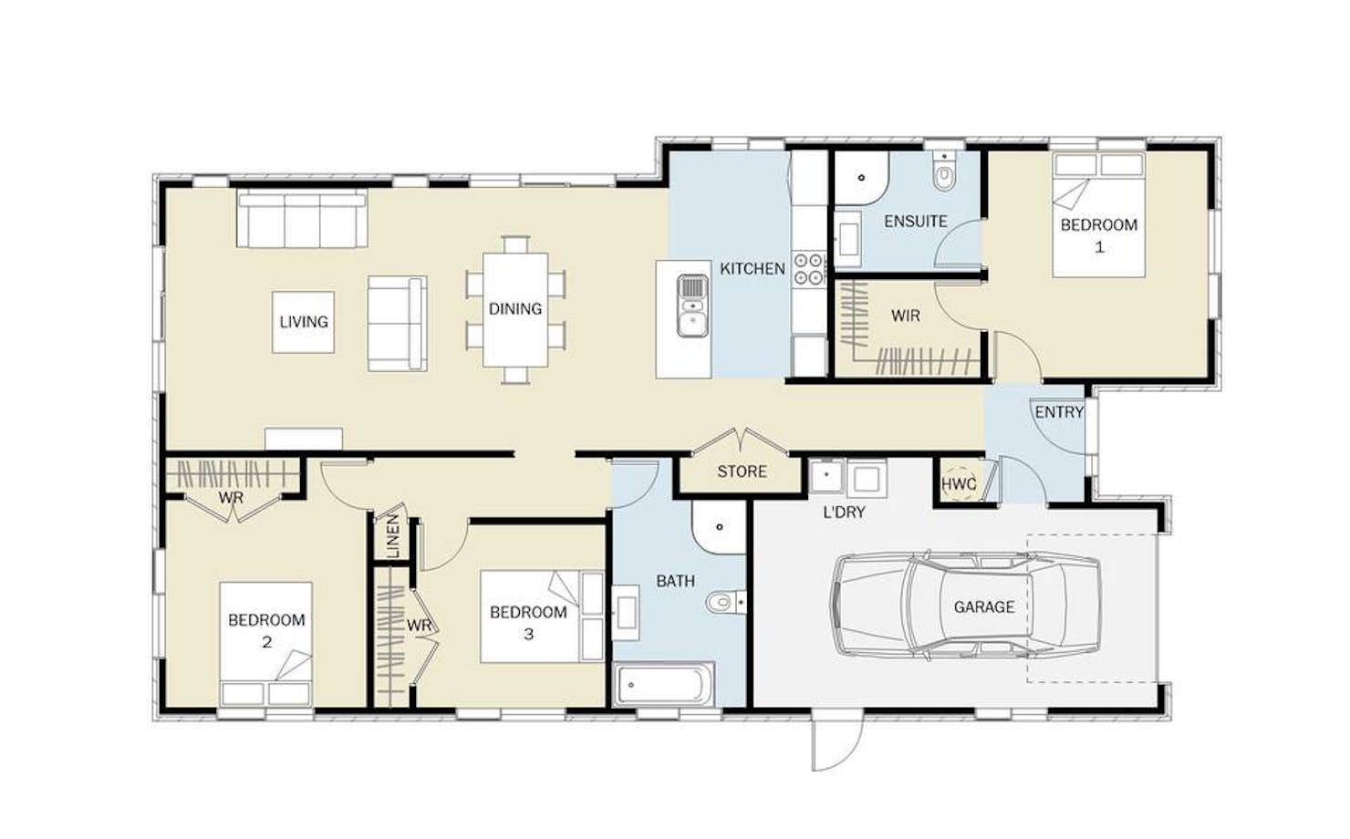 There's a lot on offer with this cleverly designed three-bedroom plan. At the entrance, you'll find the master bedroom with ensuite; the generous hallway welcomes you into the open plan kitchen living and dining space. Our Parekareka plan is designed to be a light-filled home thanks to the abundance of windows throughout the home.