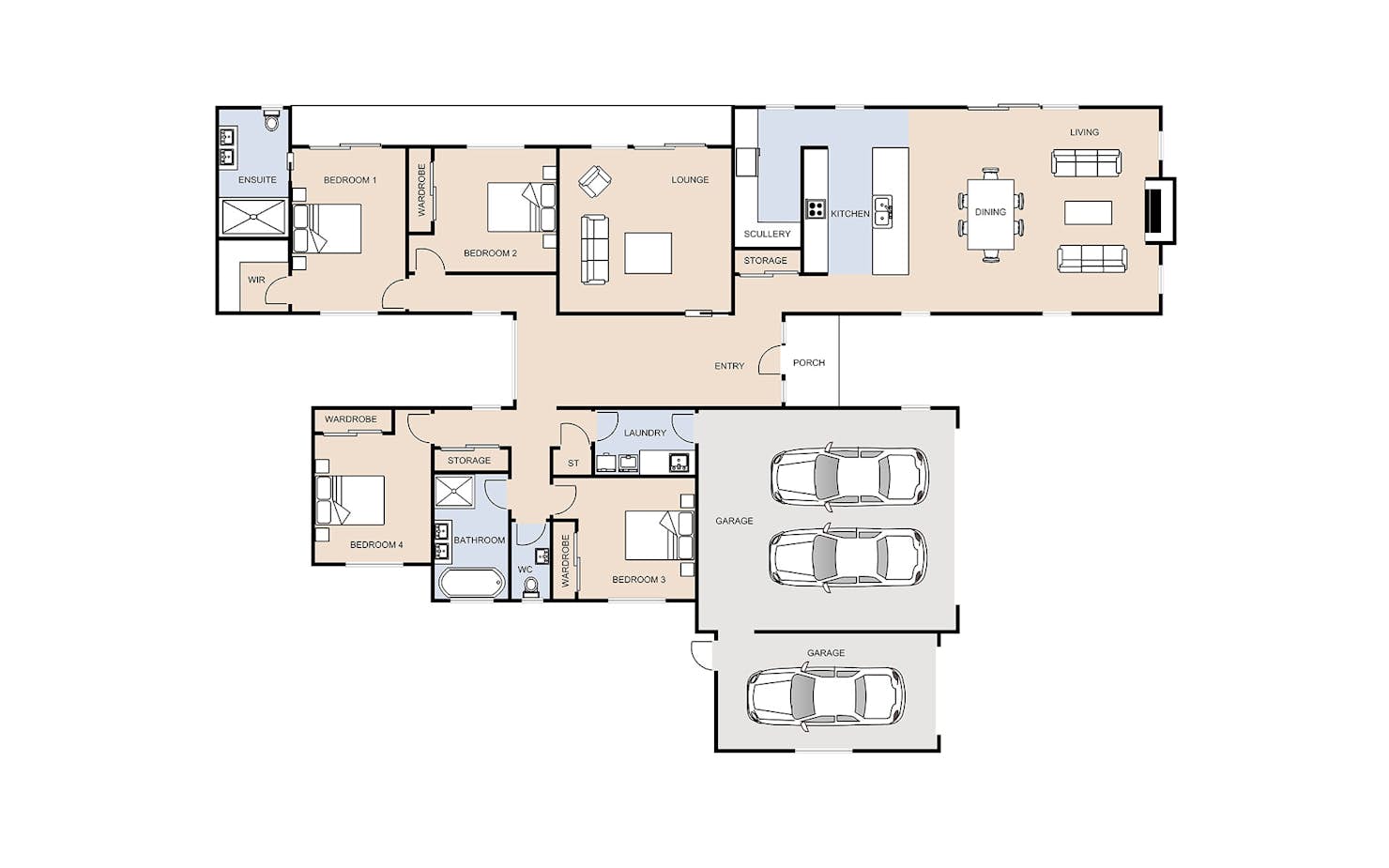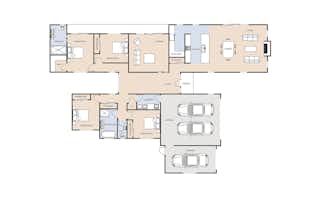 The master suite is separated from the other three bedrooms, and open-plan living is ideal for entertaining. A media room provides a cosy space for relaxation, making our Parkland plan ideal for family living.
