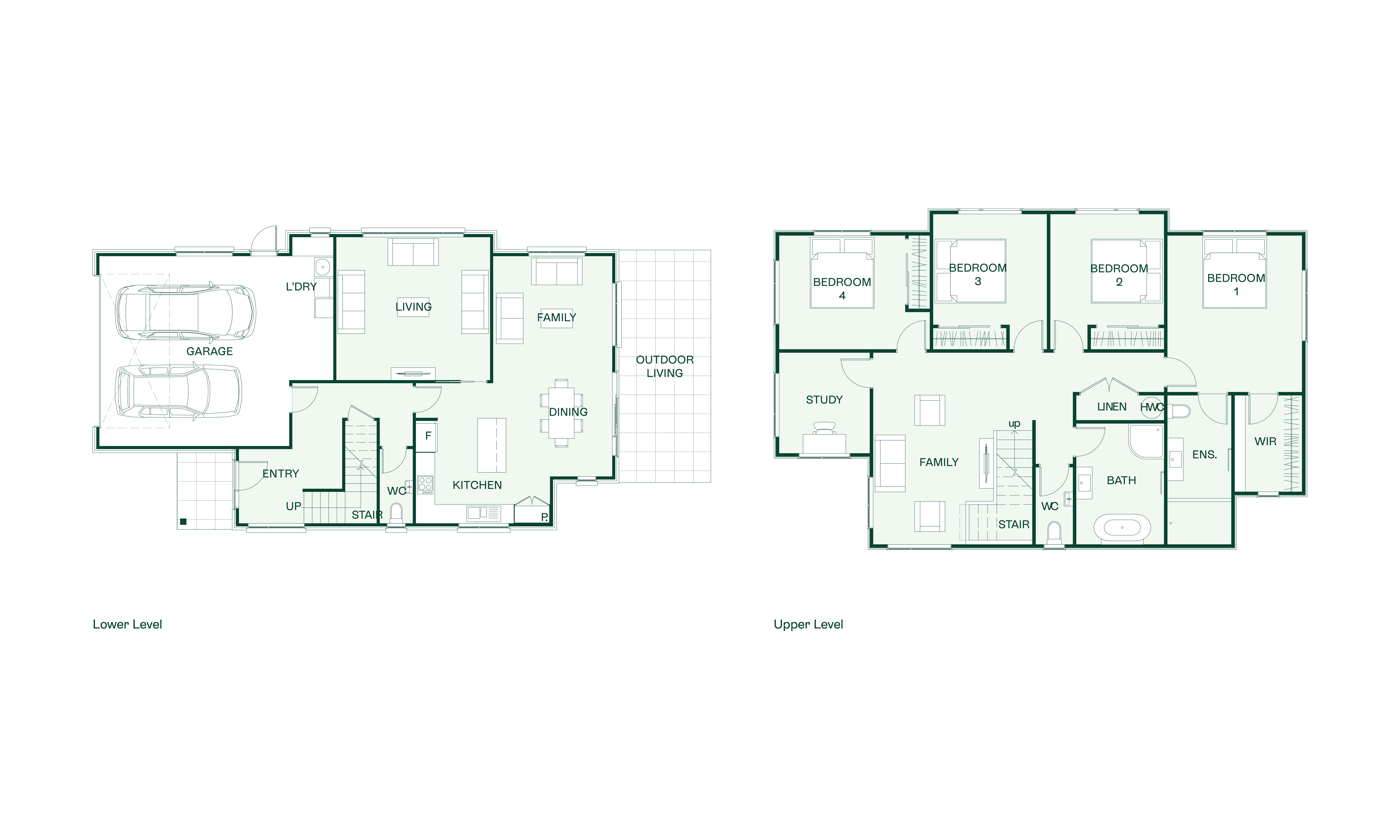 The two-storey Rakino gives your whole family room to work, rest and play. Downstairs is the social hub with open-plan living and dining that flows outside with ease, a second living area, and powder room.