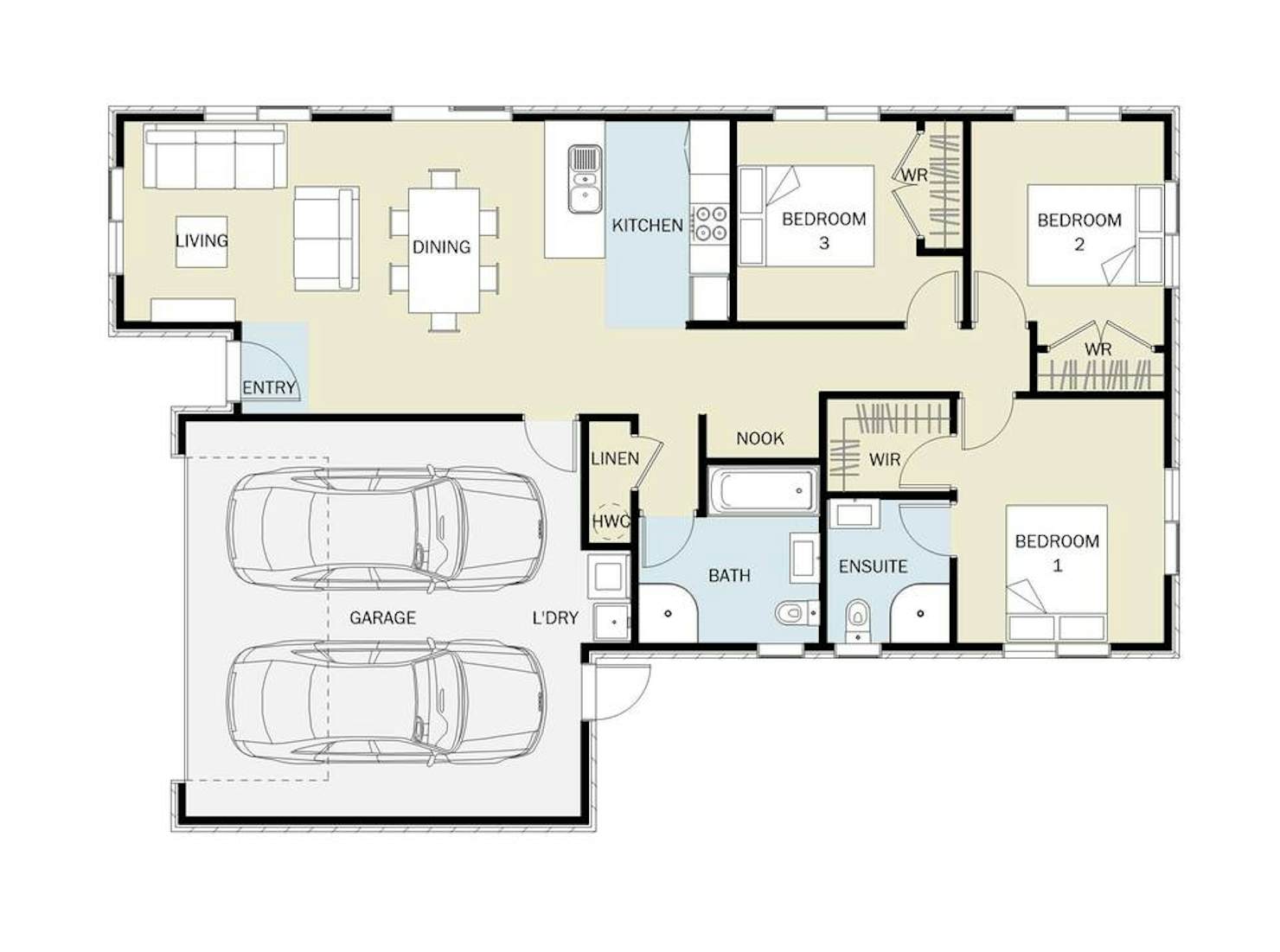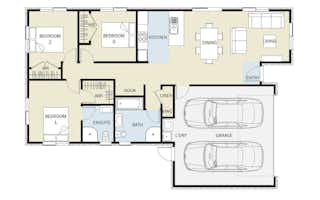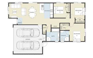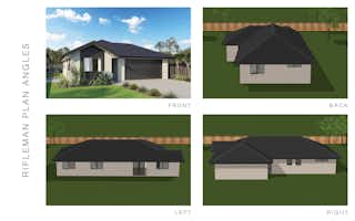The three-bedroom Rifleman plan makes great use of space at every turn. Open plan living helps to create more space throughout the home, allowing for bonus areas such as a study nook. Extra features include a generous family bathroom and a large master bedroom.